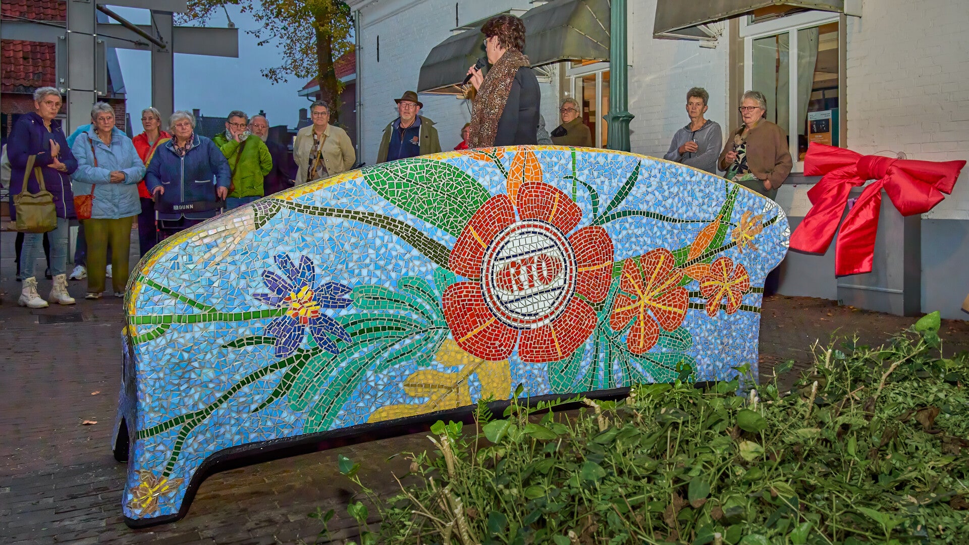 Wat begon als een idee van Leny Groenendijk groeide uit tot een prachtig en verbindend project: de RTO Social Sofa. Met een enthousiaste werkgroep – bestaande uit Leny, Marijke, Ad, Cecile, Marita, Miranda en Arja – werd het initiatief omgezet in actie. Samen met vrijwilligers, bezoekers en dorpsgenoten werd er met veel inzet, creativiteit en plezier aan de mozaïekbank gewerkt.