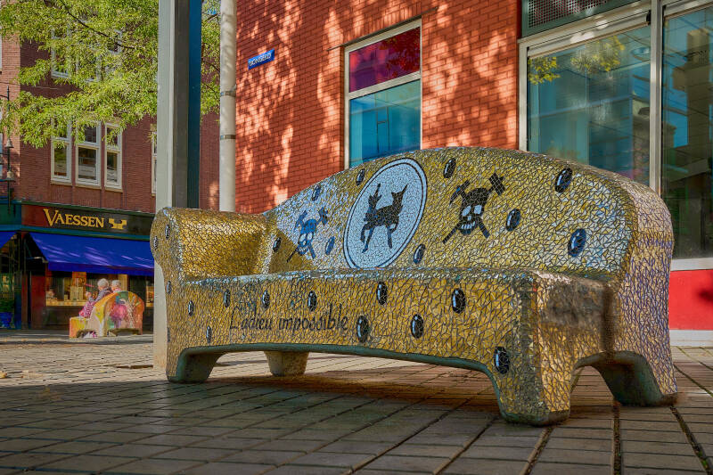 De eerste was een Social Sofa met daarop rood-witte strepen en een hond, de titel is: Auf denn Hund gekommen, een ontwerp van: Ans Lemmens. De tweede is tijdelijk uitgeleend geweest aan Venlo waar hij bij het Theater heeft gestaan.