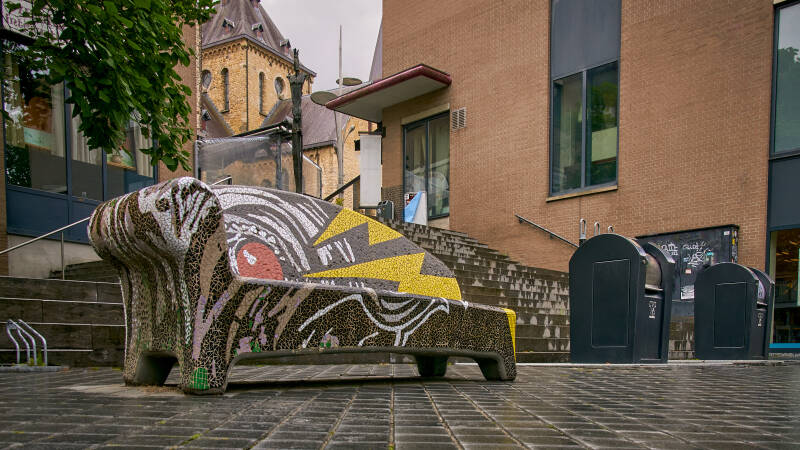 Hier stond deze Social Sofa. Echter, in okt 2024 vind ik ze deze hier niet meer. Men is bezig met herinrichting van het gebied. De naam van deze