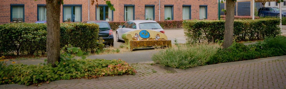 De Social Sofa biedt ruimte om te knabbelen en babbelen. Knabbel en Babbel verwijzen met hun noten naar Zorgcentrum de Notenhoff