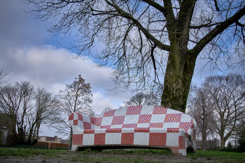 Provinciale Staten heeft Best ter ere van het 200-jarig bestaan een Social Sofa cadeau gedaan. De Social Sofa is aan de achterkant voorzien van het provinciewapen en in rood-wit gemozaïekt. Waarom dit cadeau? Arnoud Reijnen, woordvoerder van de commissaris van de Koning in Noord-Brabant: 'Brabant staat bekend om het buurten. En dat is precies wat we op de benkskes zien gebeuren. Mensen gaan er zitten om van het uitzicht te genieten en met elkaar te kletsen.'