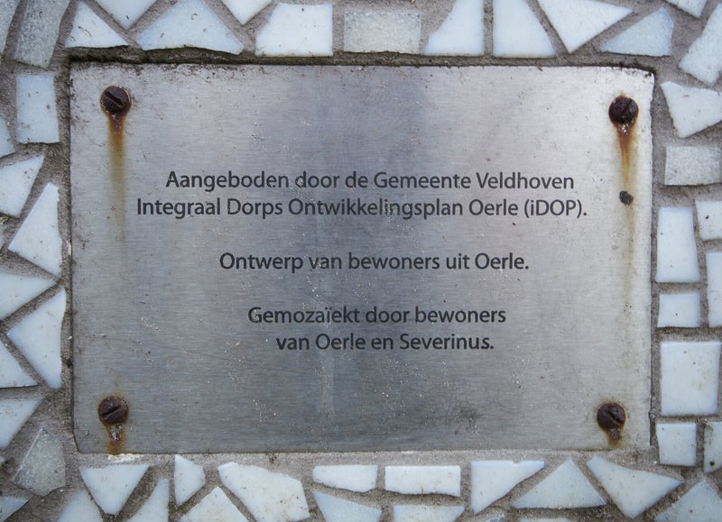 In september 2011 is deze bonte social sofa in Oerle geplaatst. Met enige fantasie zou je een koe zien liggen. Deze bank is ontworpen door Charlotte van den Boomen, Karin van den Boomen, Sjef Fransen, Jos Houbraken, Lotte Wijnheijmer en Fried van Beers. Zij wilden de Brabantse Roodbonte koe terug brengen naar de kom van Oerle. Oerle van origine een dorp met veel boerderijen en een grote mate van rust en gemoedelijkheid en dus kansen om tijd te nemen om eens te 'buurten'. Vanaf de jaren 70 zijn de boerenbedrijven uit de kom verplaats naar het buitengebied. Daarmee verdween de koe uit het dorpsbeeld. Hierdoor was er ruimte voor nieuwe huizen en mensen. Momenteel is het moeilijk om iedereen in het dorp te kennen. Doel van de Social Sofa is om hier wat verbetering in e brengen. Met deze 'koe' in het centrum van Oerle is er weer een plaats waar men even de tijd kan nemen voor een stukje social contact. En zoals te lezen als je de QR-code, die linkt met site over Social Sofa Oerle, op de bank scant: Ga eens zitten en ‘buurt’ over ons Oers, of over andere zaken. En neem er gerust de tijd voor. “Geen koe is zo bont of er zit een gehuchtje aan”