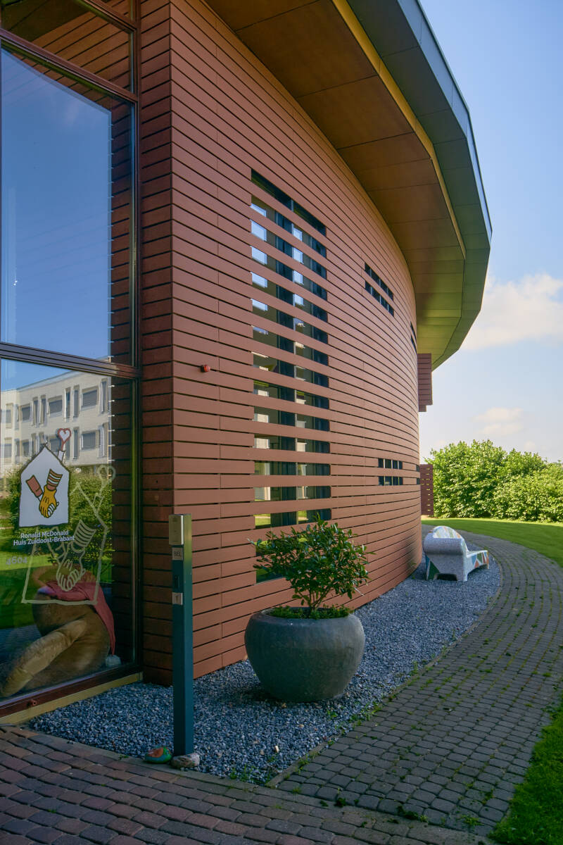 Toen Karin Bruers, op het nippertje, SocialSofa terug uit failliete boedel van Cardan overnam op maandag 17 augustus 2015 was dit een van de Social Sofa die verplaatst werd naar het Duvelhok in Tilburg. En daar snel afgewerkt en geplaatst op deze plek. Het bankje bij het Ronald McDonaldhuis is geschonken door Karin Bruers. Het is hier geplaatst op 7 september 2015. Het heeft een mooie plaats gekregen net binnen de poort in de schaduwzijde van het huis.