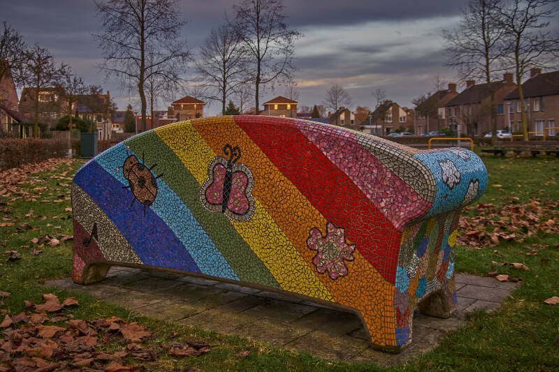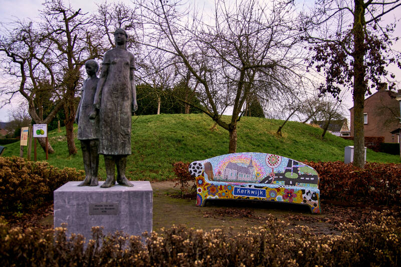 Vandaag, zaterdag 1 januari, waren we in Vianen geweest. In de buurt heb je een aantal plaatsen met Social Sofa's. Onderweg naar huis zouden we langs Culemborg, Geldermalsen en Waardenburg kunnen gaan. Echter in Culemborg en Waardenburg staan de Social Sofa's niet direct op een plaats waar je als de deuren gesloten zijn foto's kan maken. Ik koos er dus voor om de bankjes van Kerkwijk, Ammerzoden en als de tijd mee zat aan de noordkant van Den Bosch te fotograferen. Het weer was redelijk somber. Altijd jammer voor de foto's.