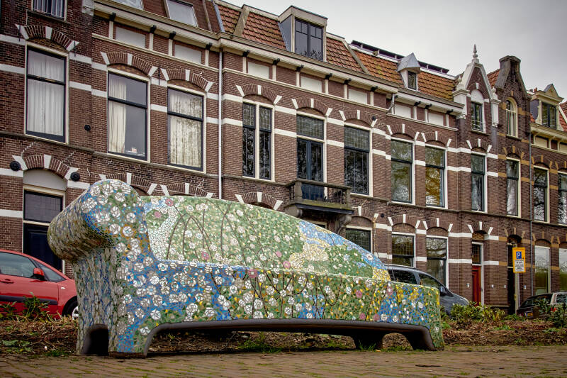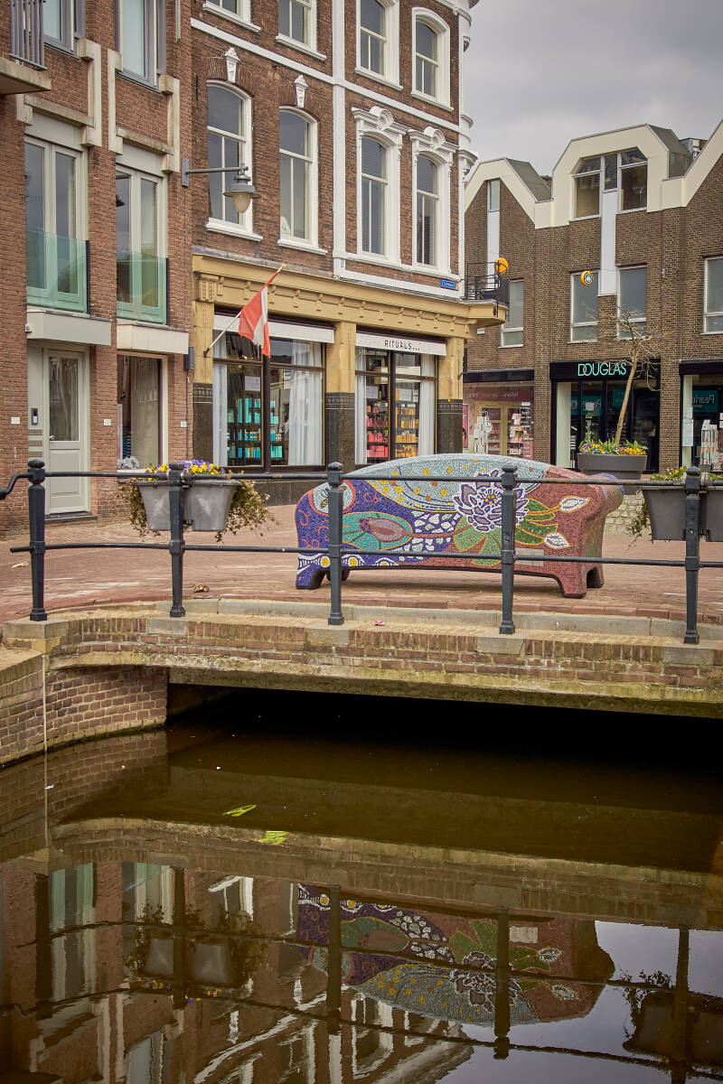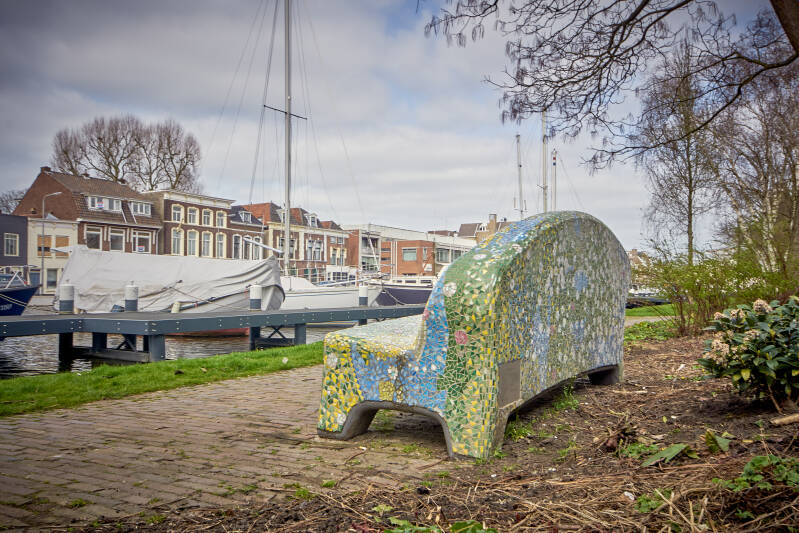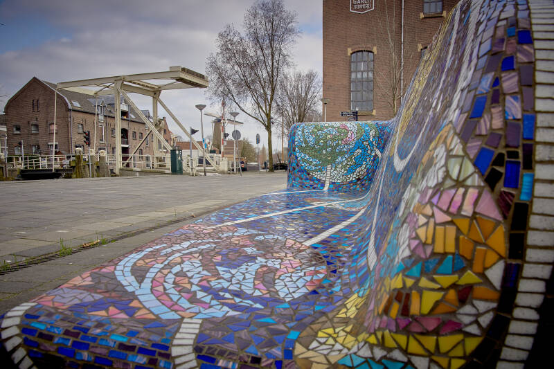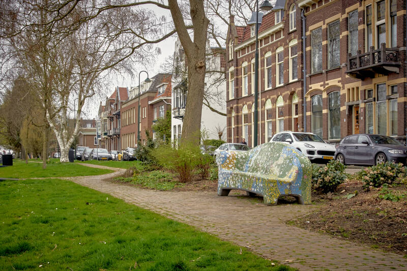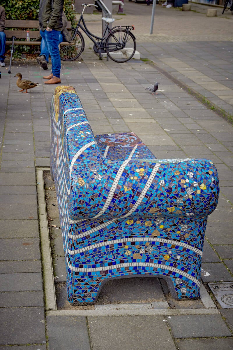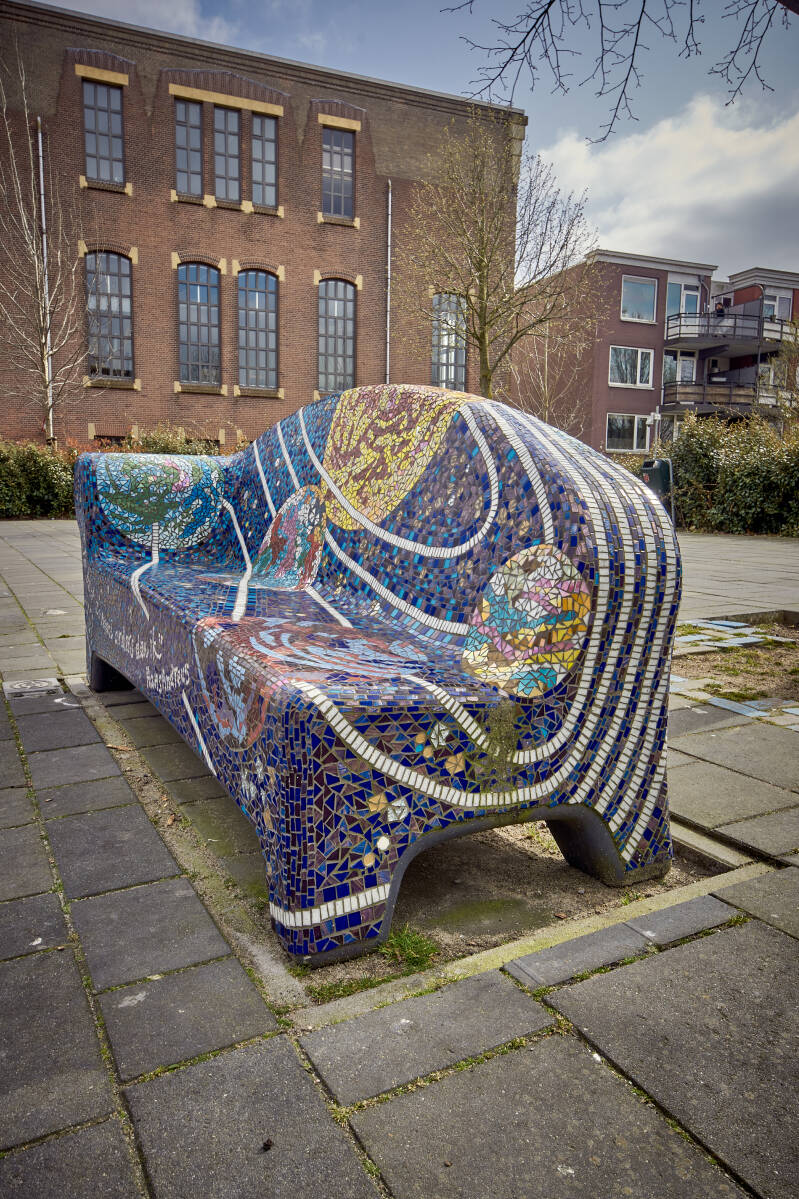 De 'CentrumSofa', op de kruising van de Turfmarkt en de Kleiweg, is vrijdag 19 februari 2021 op zijn plaats gezet. Men heeft voor deze plek gekozen omdat er veel wandelaars en winkelende mensen langs komen. Het bankje is ontworpen door Marlinda Weijers. Hiervoor heeft ze musea bezocht en gesprekken met deskundigen en ondernemers gevoerd. Het thema van de ‘CentrumSofa’ is Gouds Plateel, de toegepaste kunst van beschildering van aardewerk uit het begin van de 20e eeuw. De vormgeving van de 'CentrumSofa' is geïnspireerd op Gouds Plateel, beschilderd aardewerk dat door meerdere plateelfabrieken in Gouda werd geproduceerd. De sofa heeft in het mozaïek de zwierige vormen van bloemen en bladeren en de mooie kleuren uit het begin van de 20e eeuw. Vanaf augustus 2020 hebben vrijwilligers deelgenomen aan een mozaïekworkshop van Stichting Social Sofa in Tilburg. Deze Social Sofa is geplaatst op 19 februari 2021
